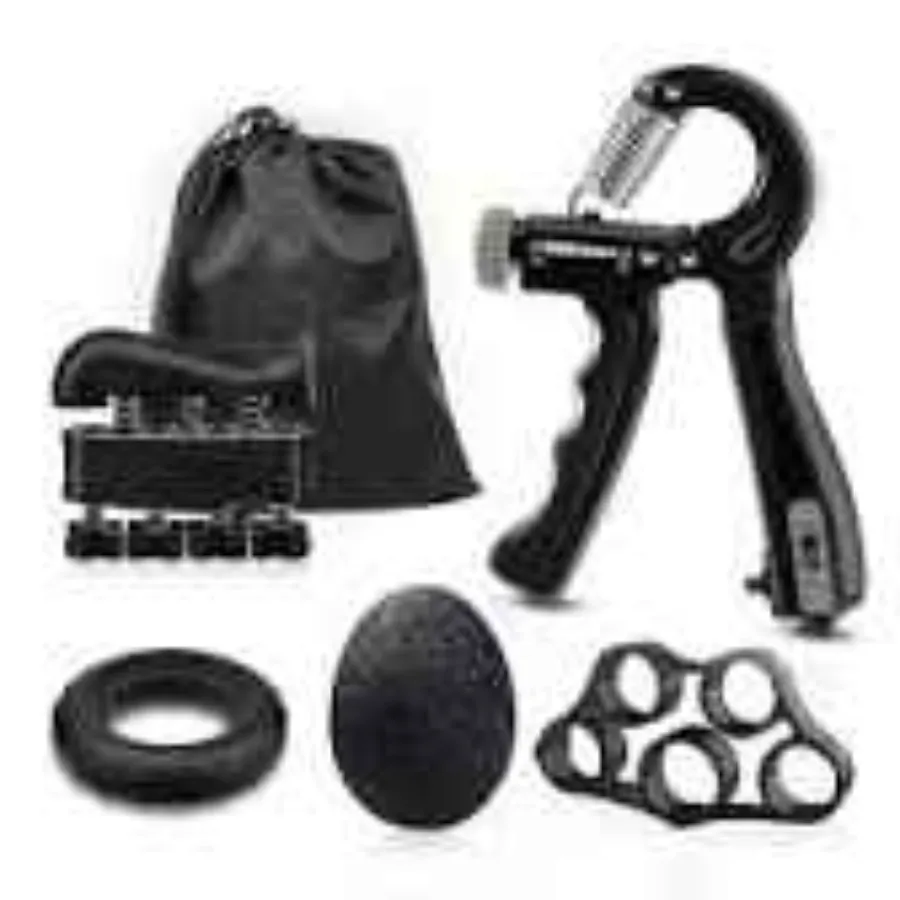 Kit de renforcement de la poignée (5 Pieces) entraîneur de force de préhension, entraînement de l'avant-bras, réglables, renforcement des doigts, anneau et balle anti-stress avec sac de transport مجموعة تقوية قبضة اليد (5 قطع)